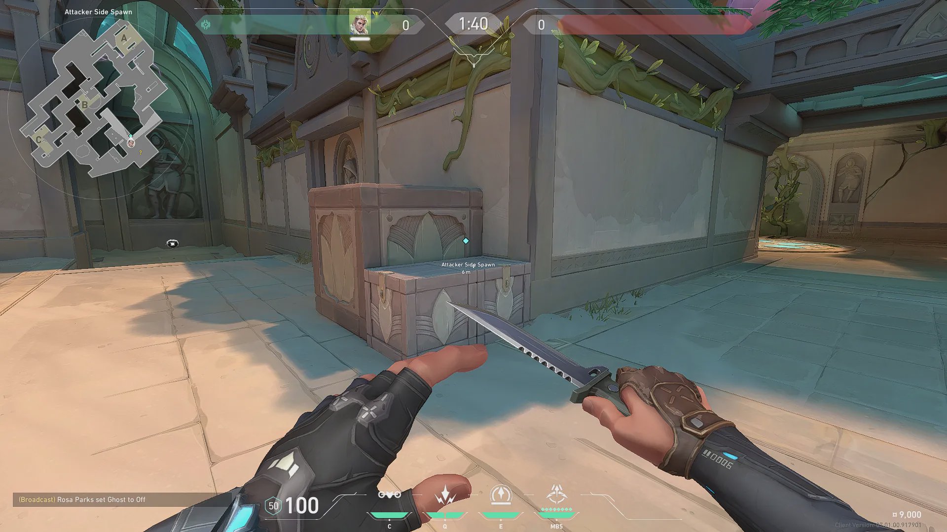 进攻方出生点出手,探测B包和周边信息。