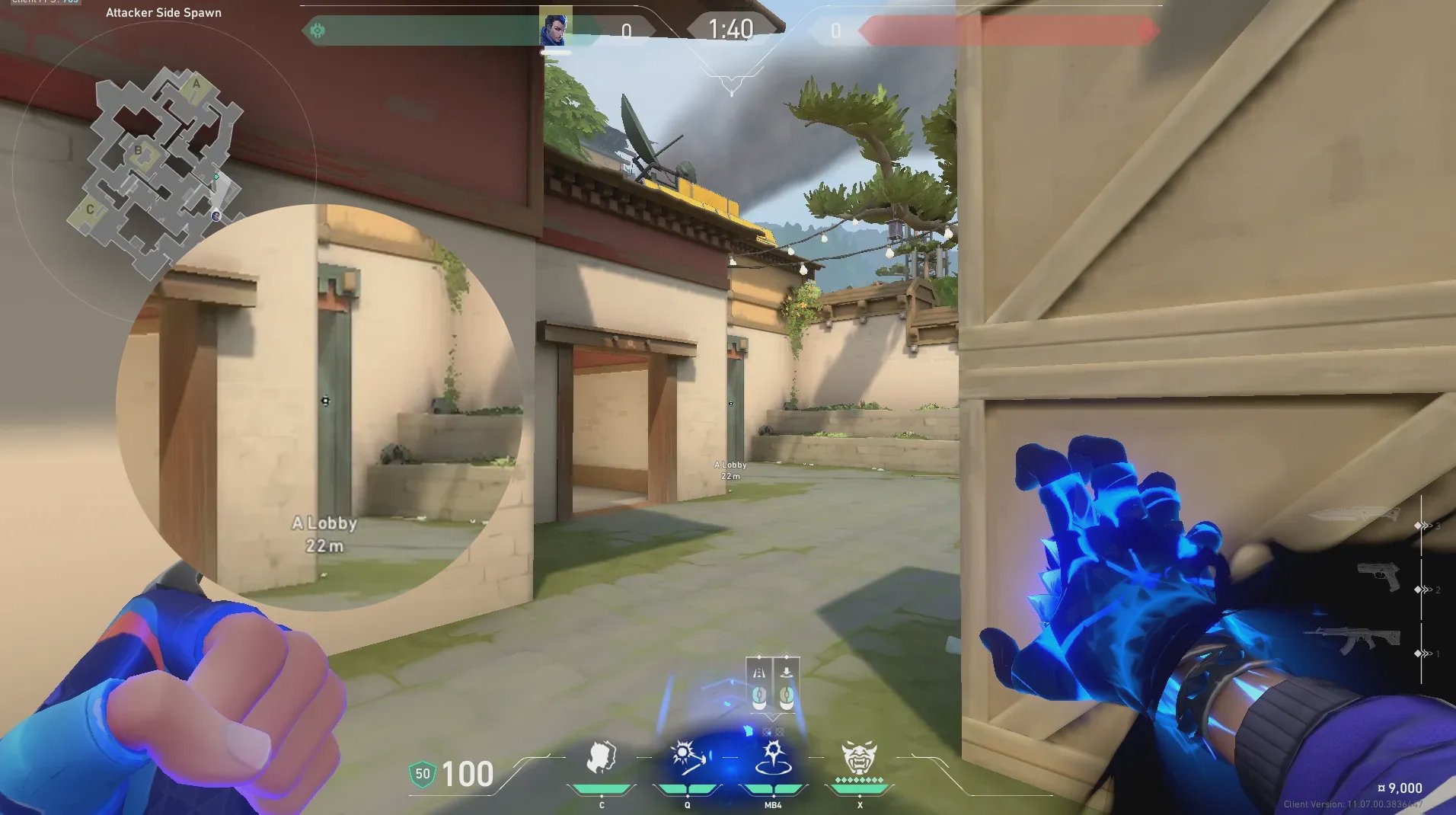进攻方出生点出手,快速接管A包位置。