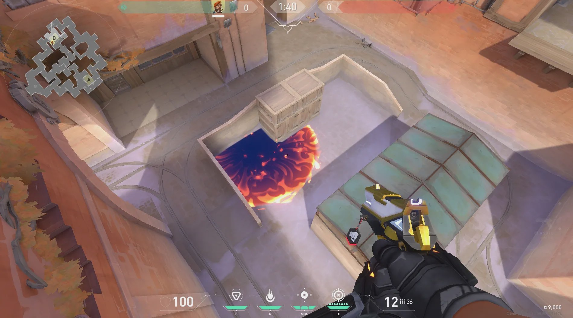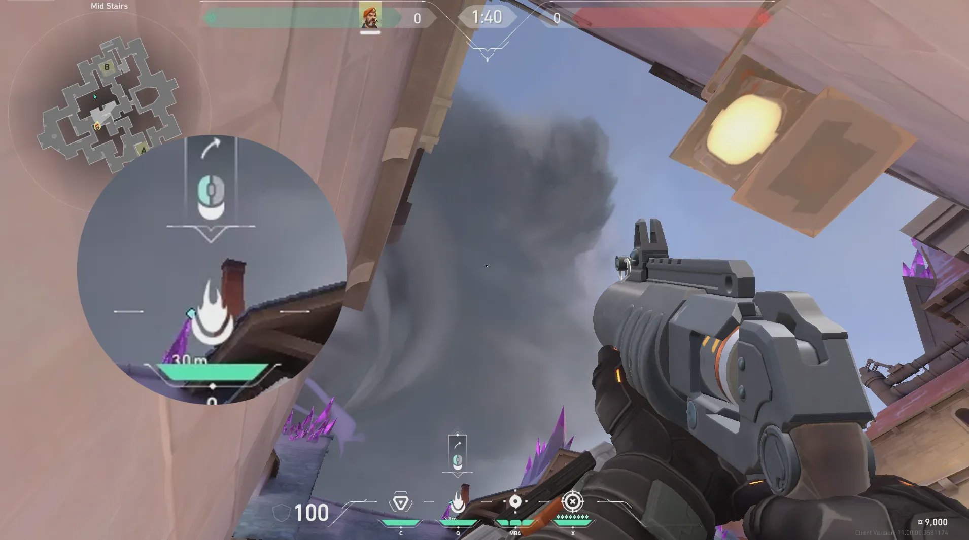 中楼梯出手,压制B默认下包点,适合下包后拖时间。