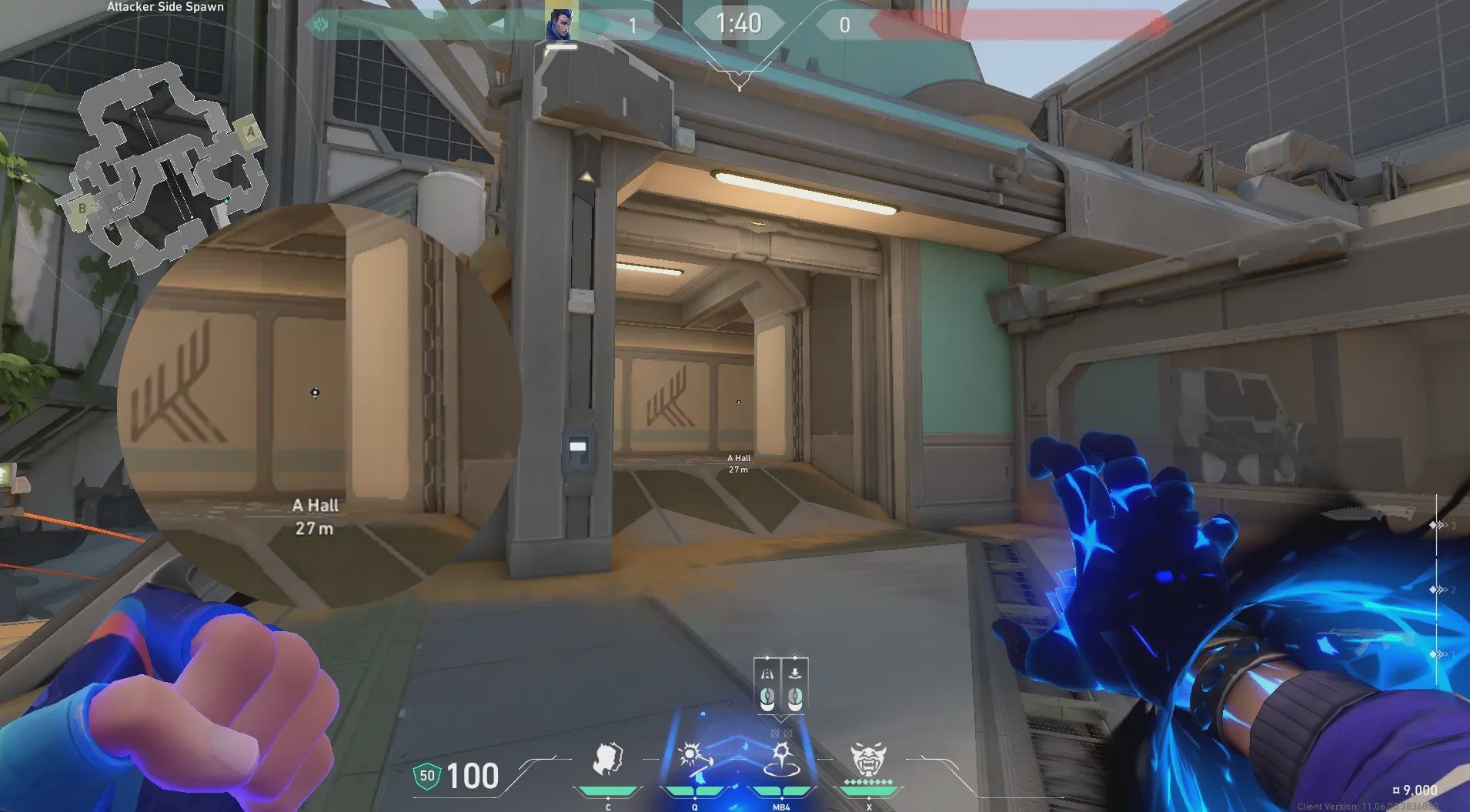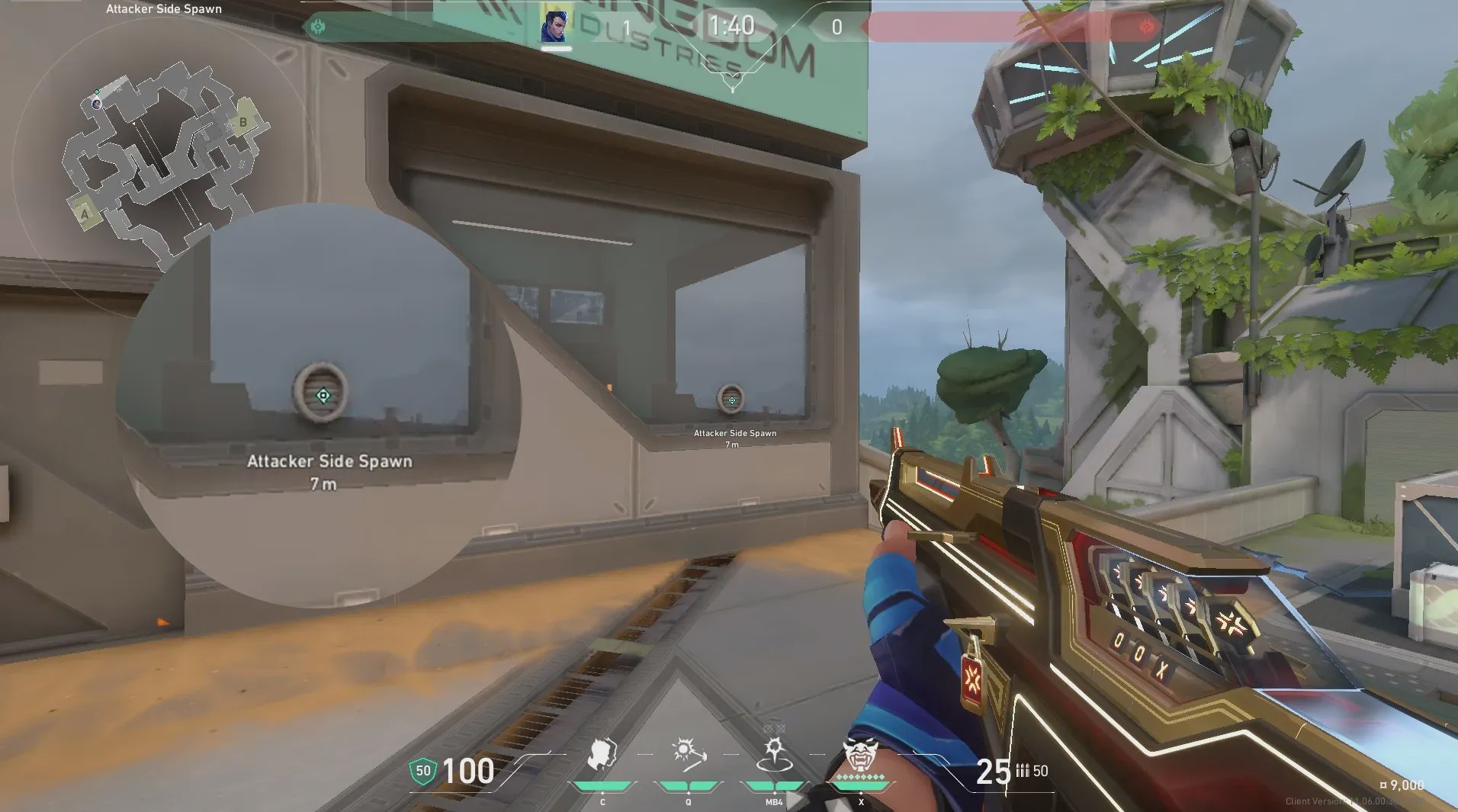 进攻方出生点出手,处理A默认下包点附近位置。