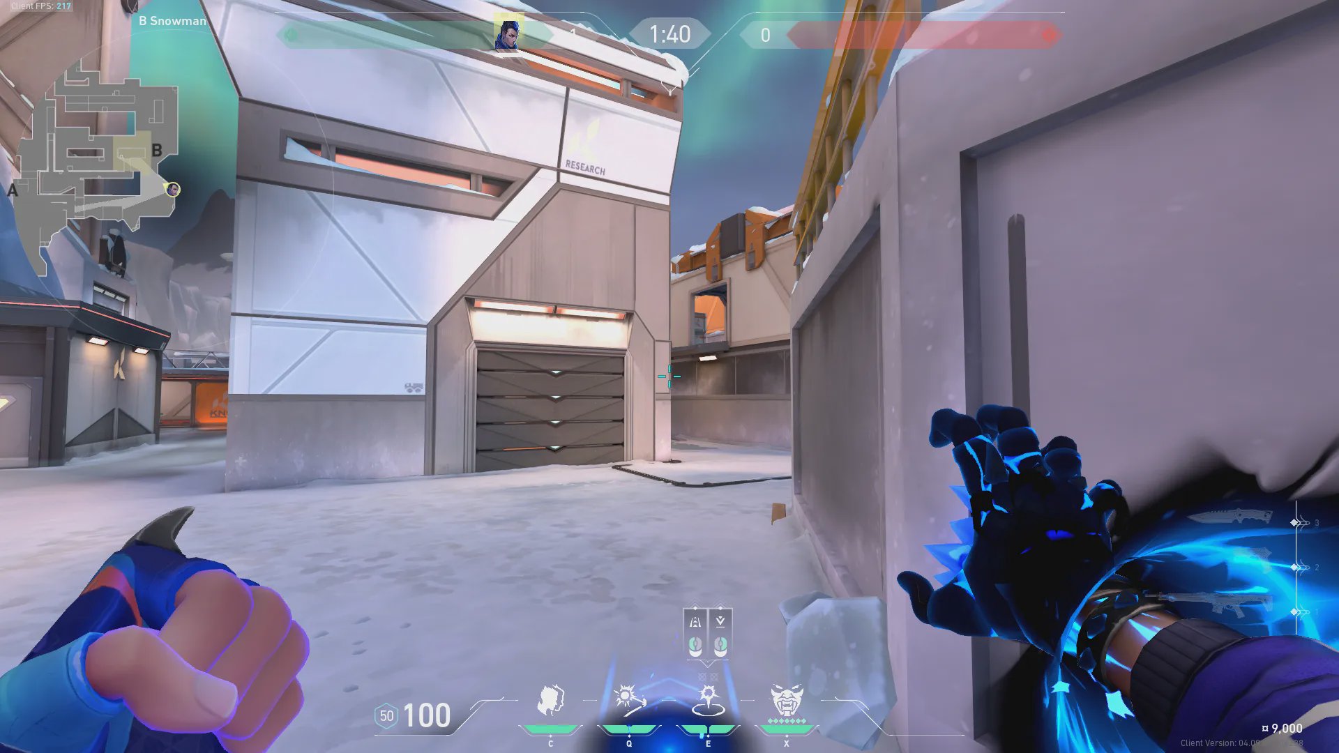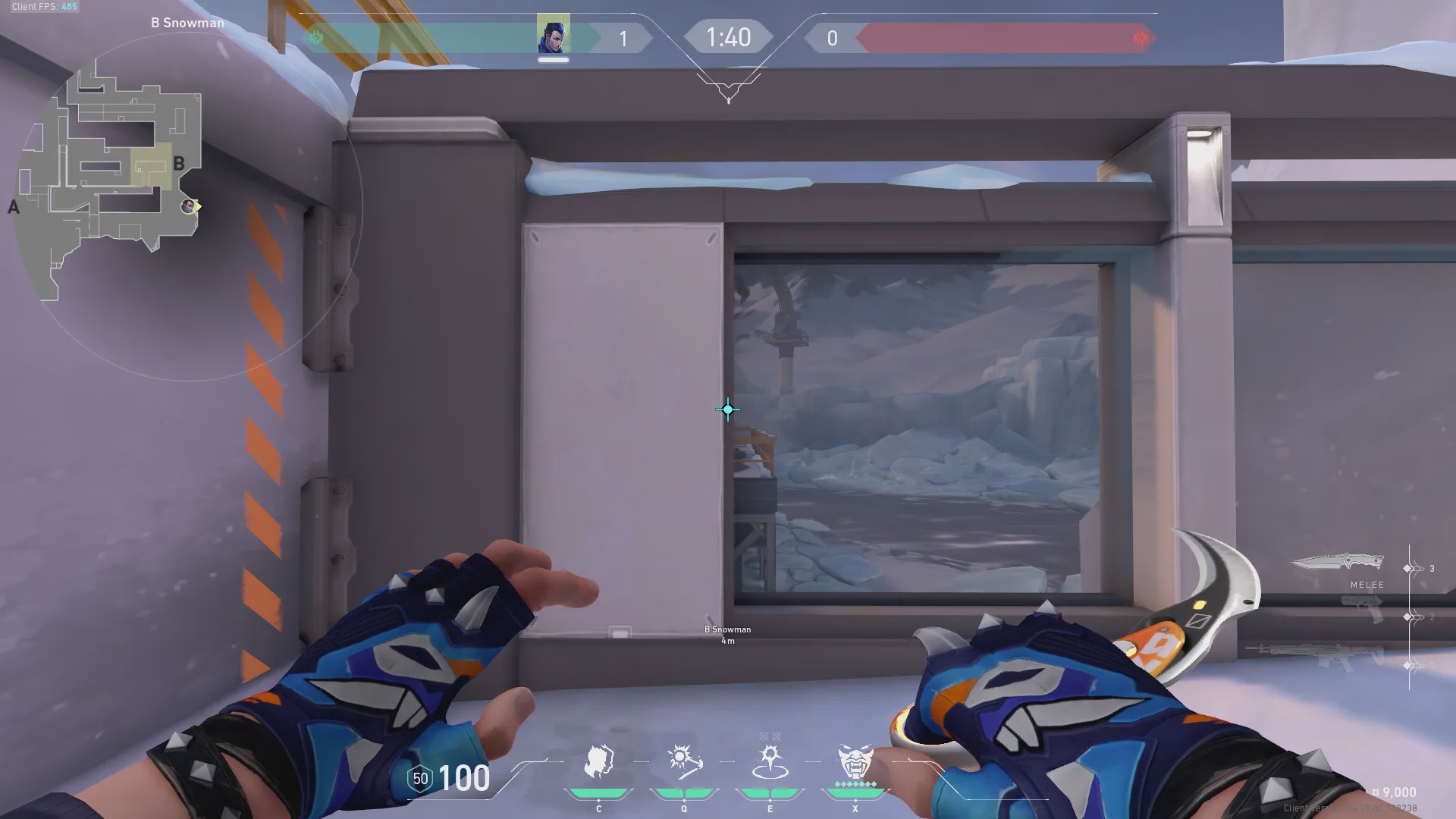 B雪人出手,快速转到进攻方出生点附近位置。