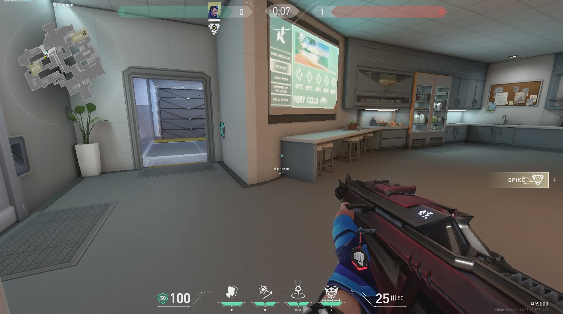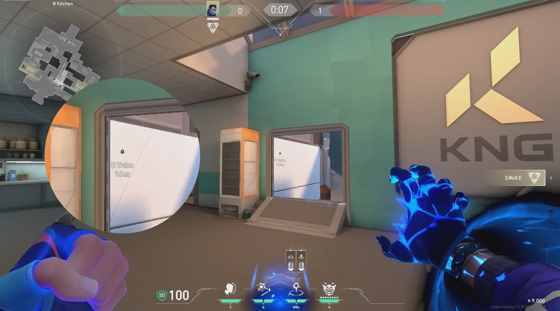 B厨房出手,快速转到进攻方出生点附近位置。