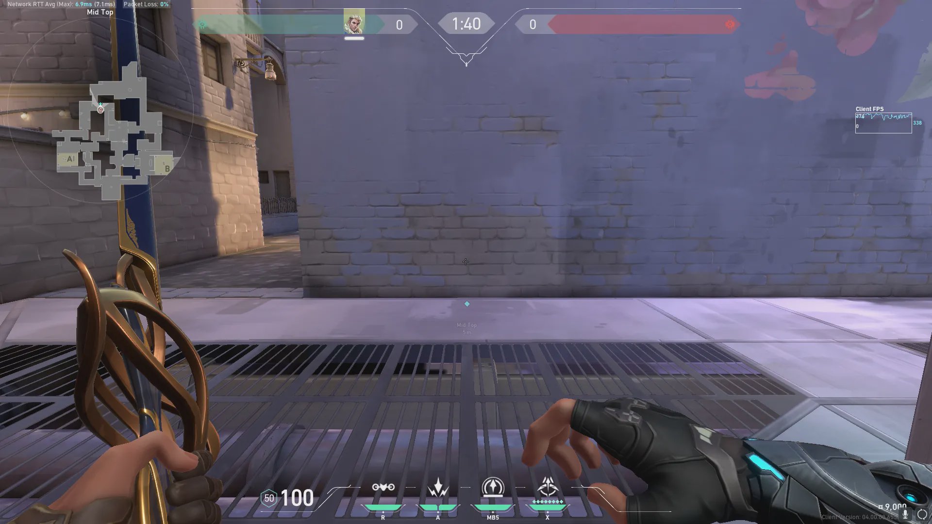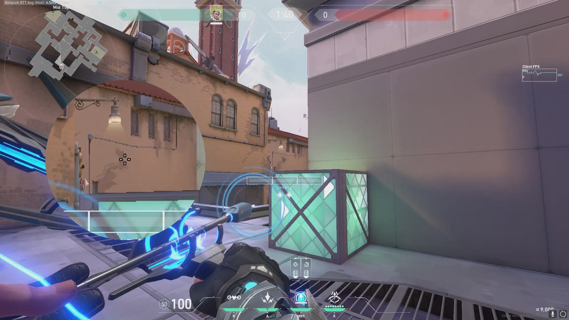 中路上方出手,探测中饼和周边信息。