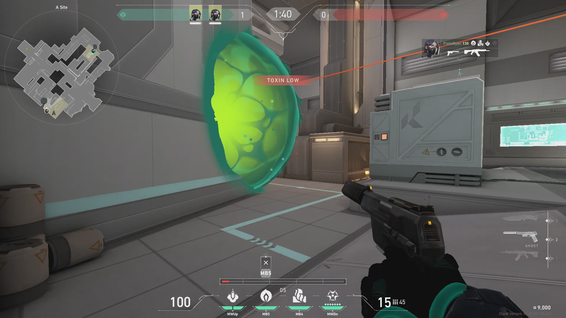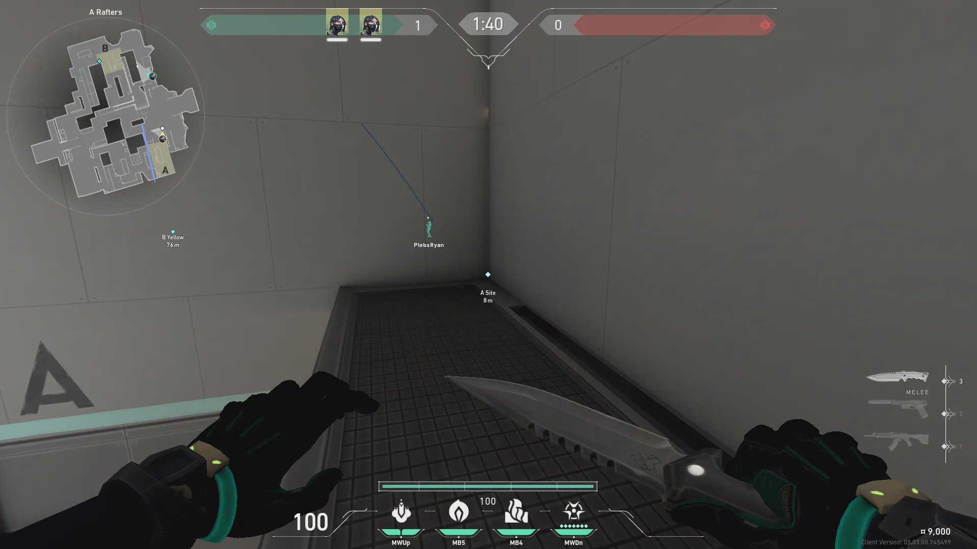 A高台出手,封锁A吊索路线,限制对手走位。