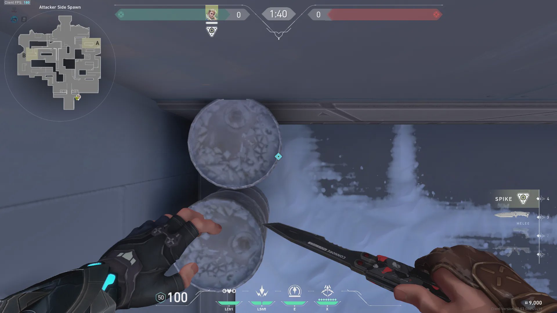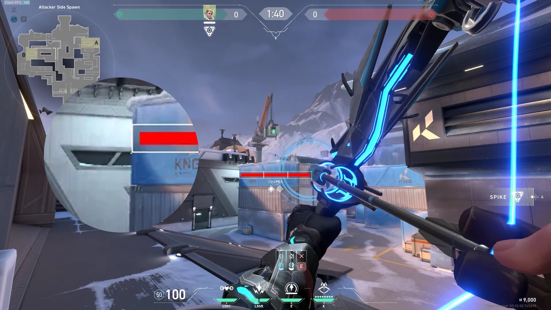 进攻方出生点出手,探测B绿箱和周边信息。