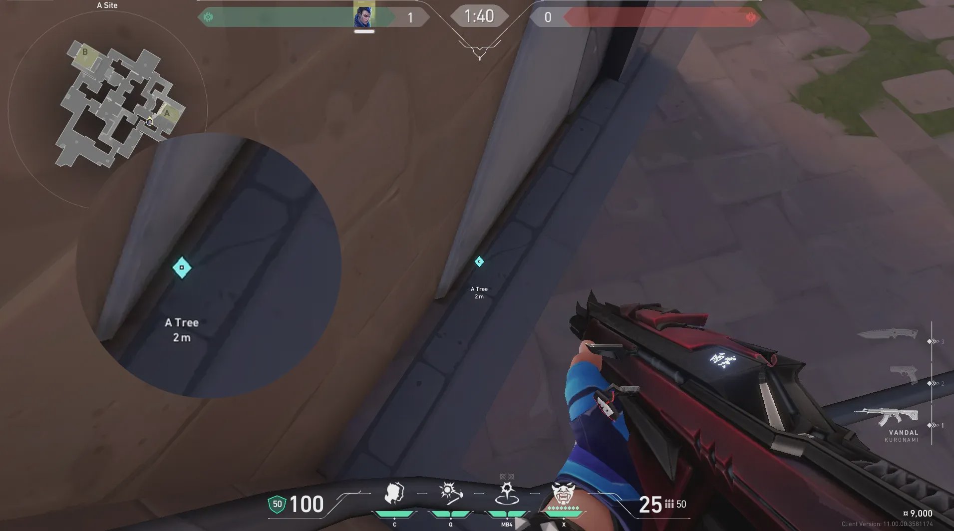 A门出手,快速转到防守方出生点附近位置。