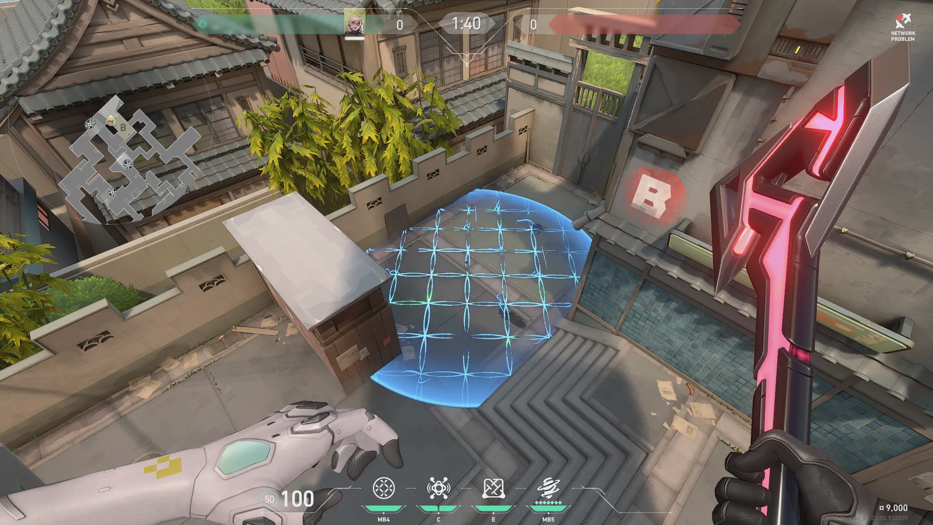 B厅出手,封锁B后点路线,限制对手走位。
