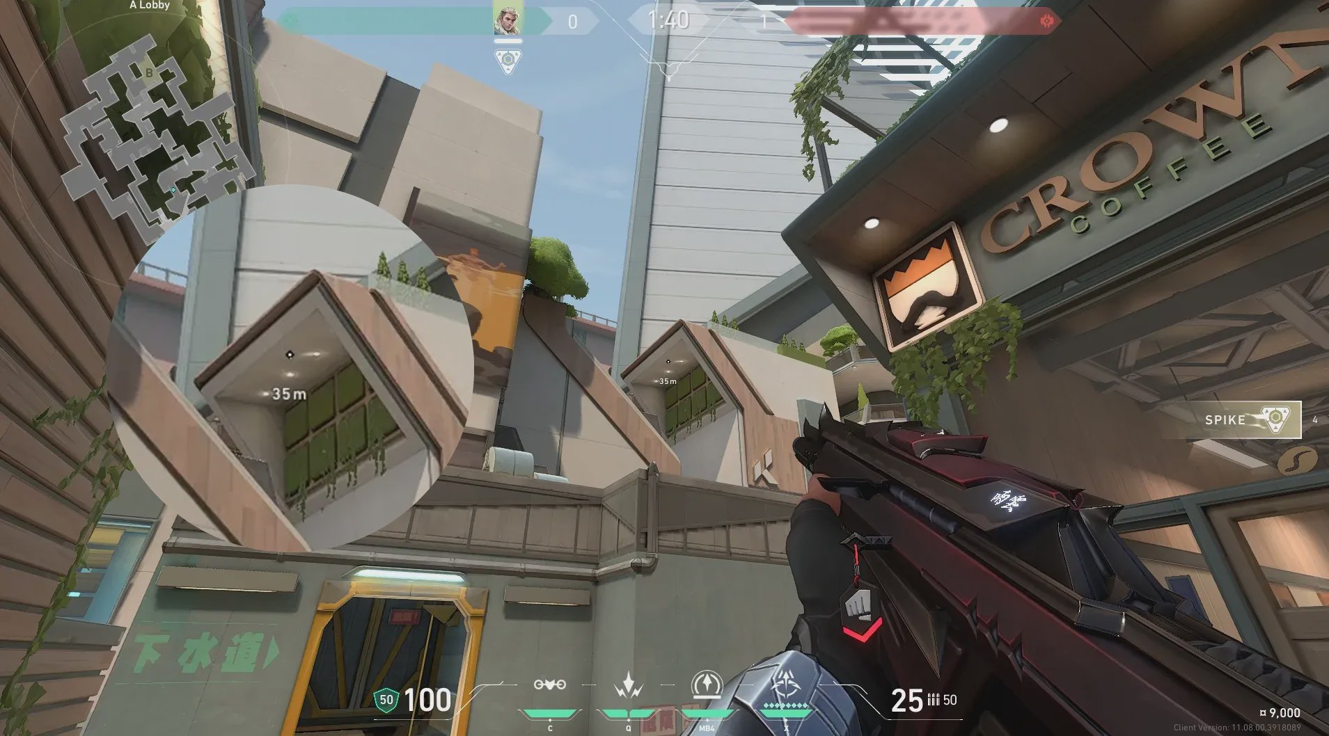 从A厅图示位置出手,探测A坡信息,适合进A前先确认坡上站位。
