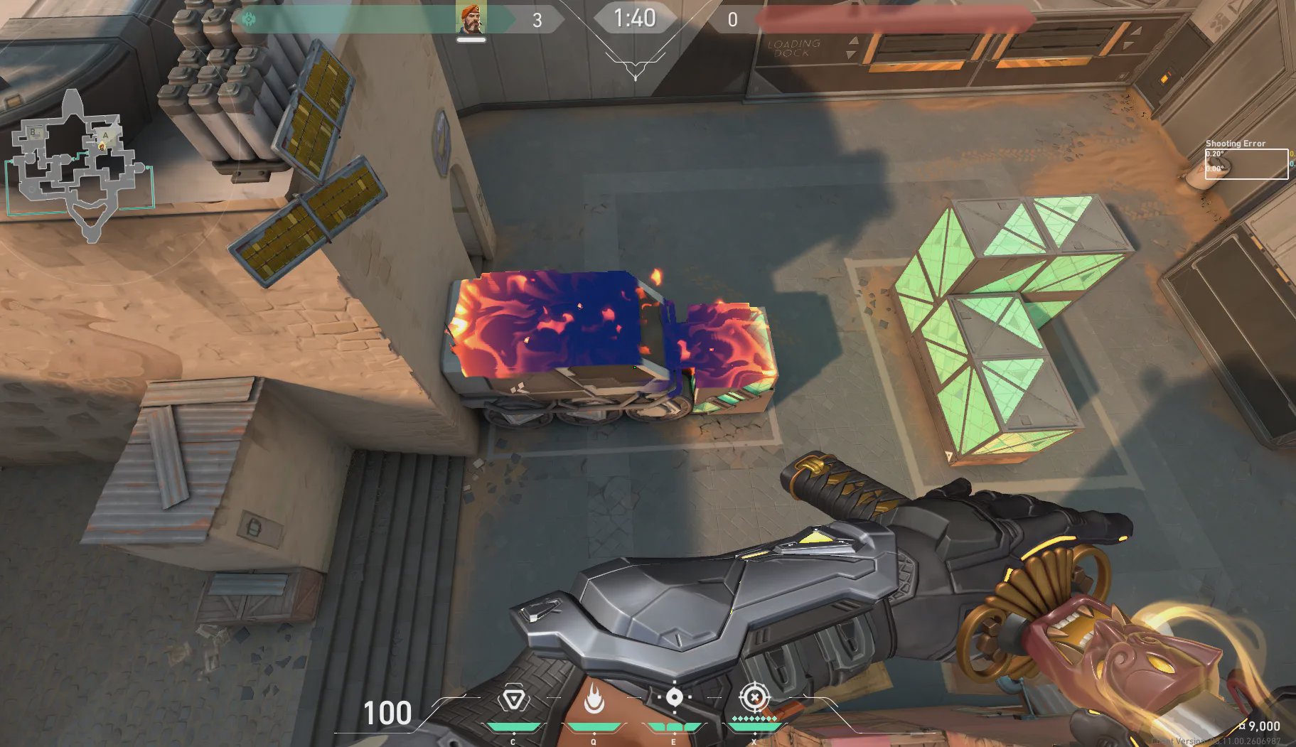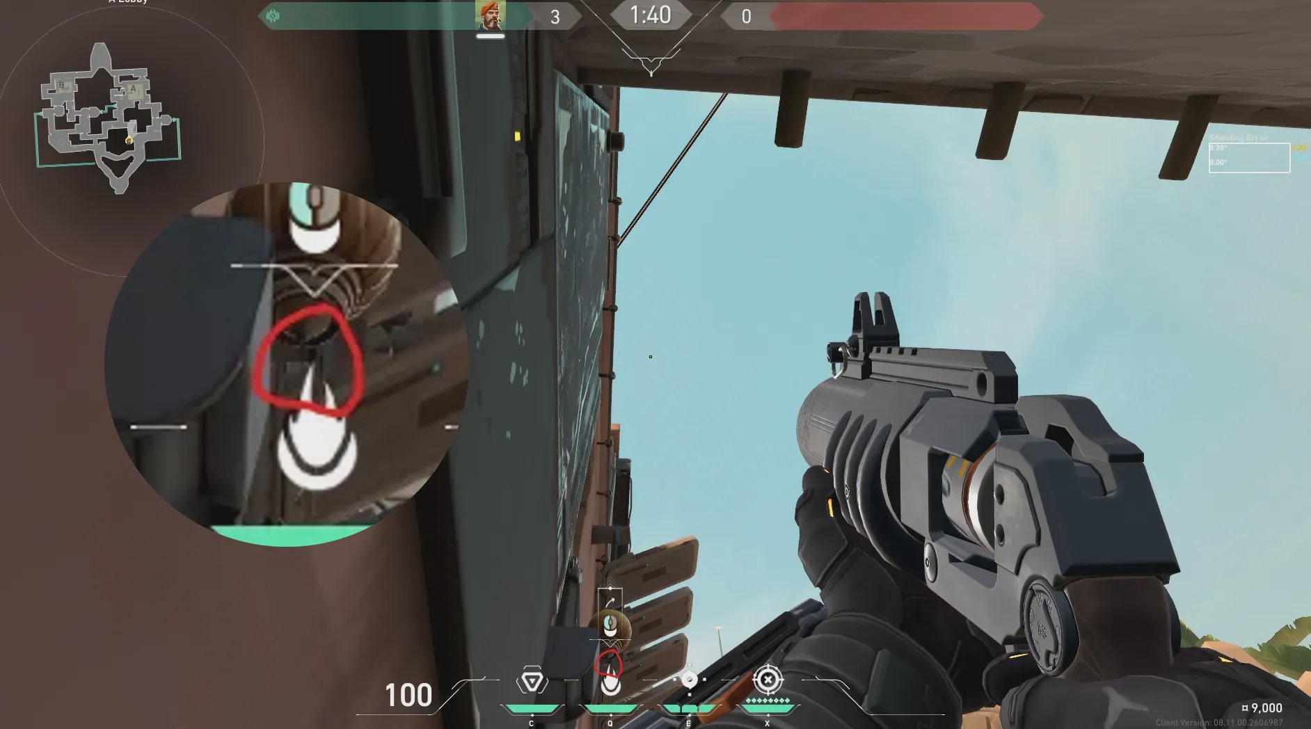 从A厅桶位角落出手,烧A车顶位,适合进点前清车顶或下包后压车顶站位。