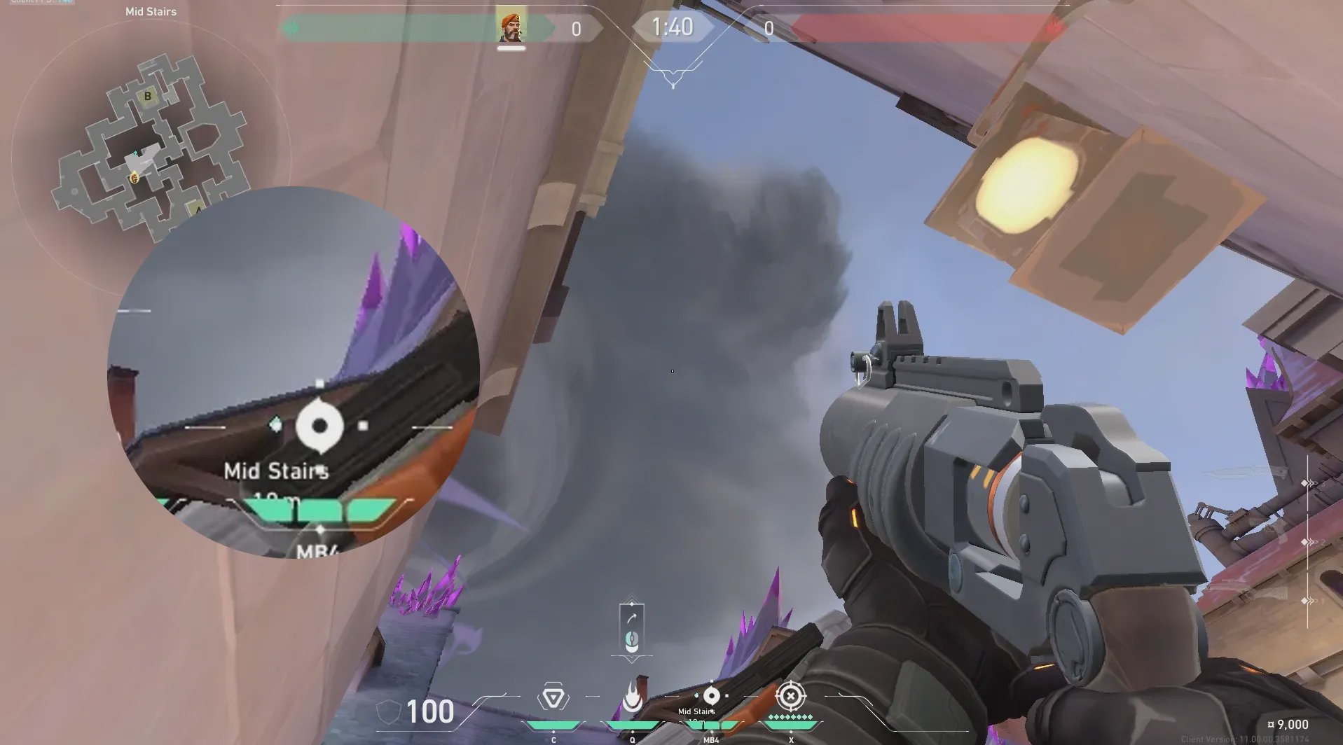 中楼梯出手,压制B默认下包点,适合下包后拖时间。