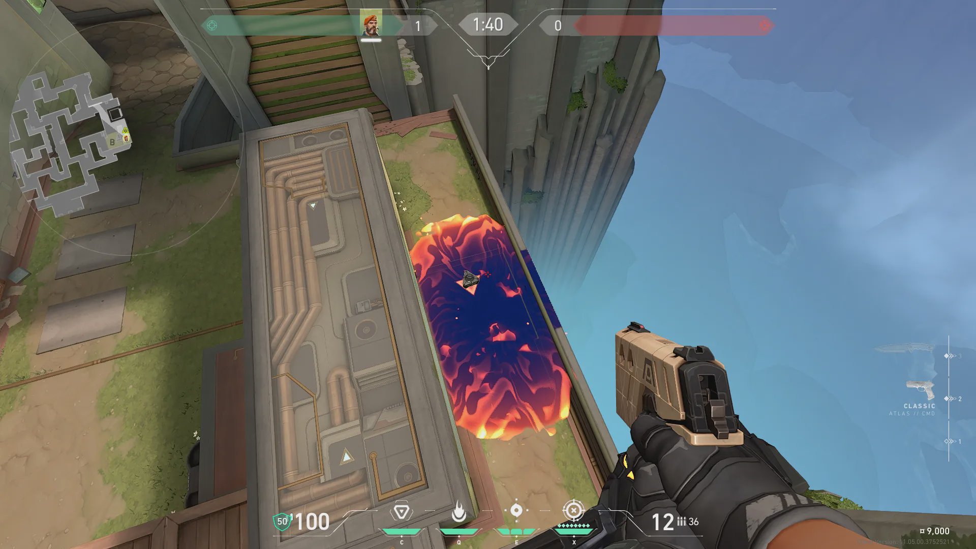 跳投出手,燃烧榴弹约7秒后会落到B后点。