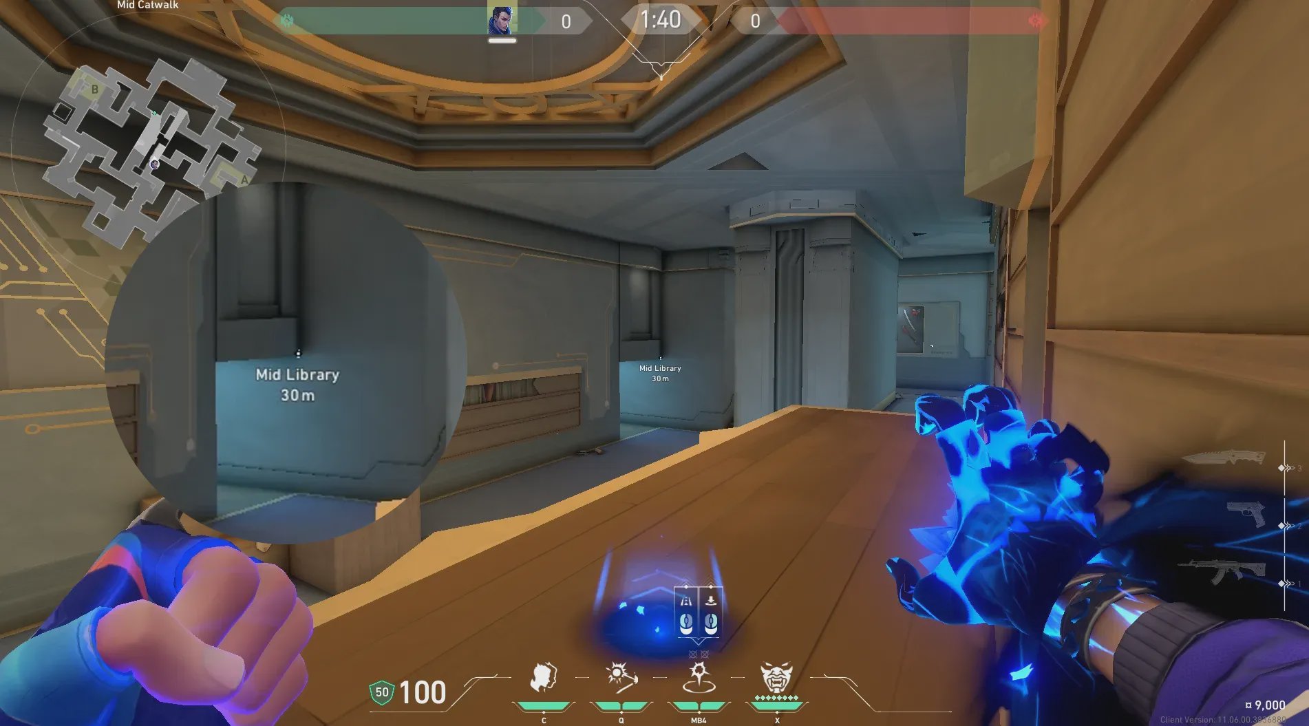 中猫道出手,快速转到防守方出生点附近位置。