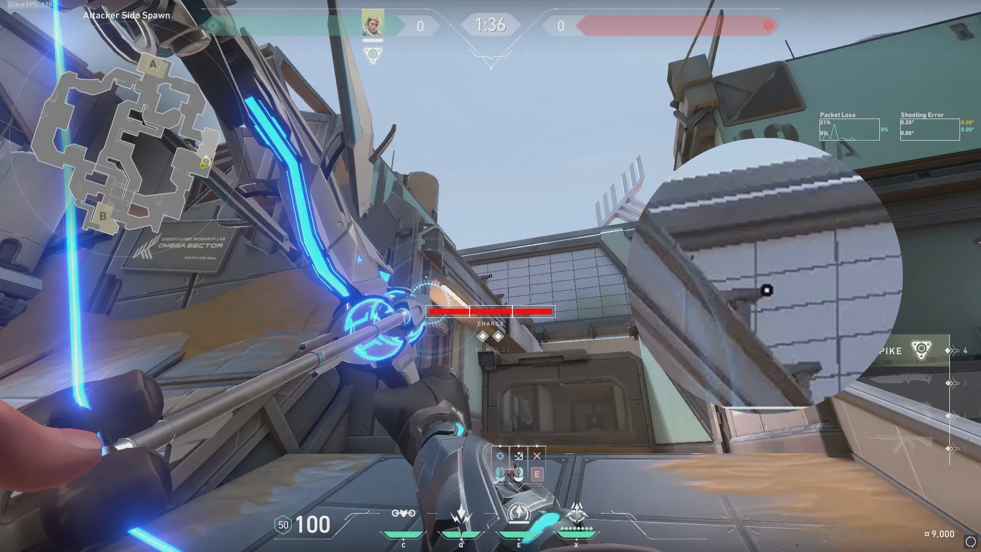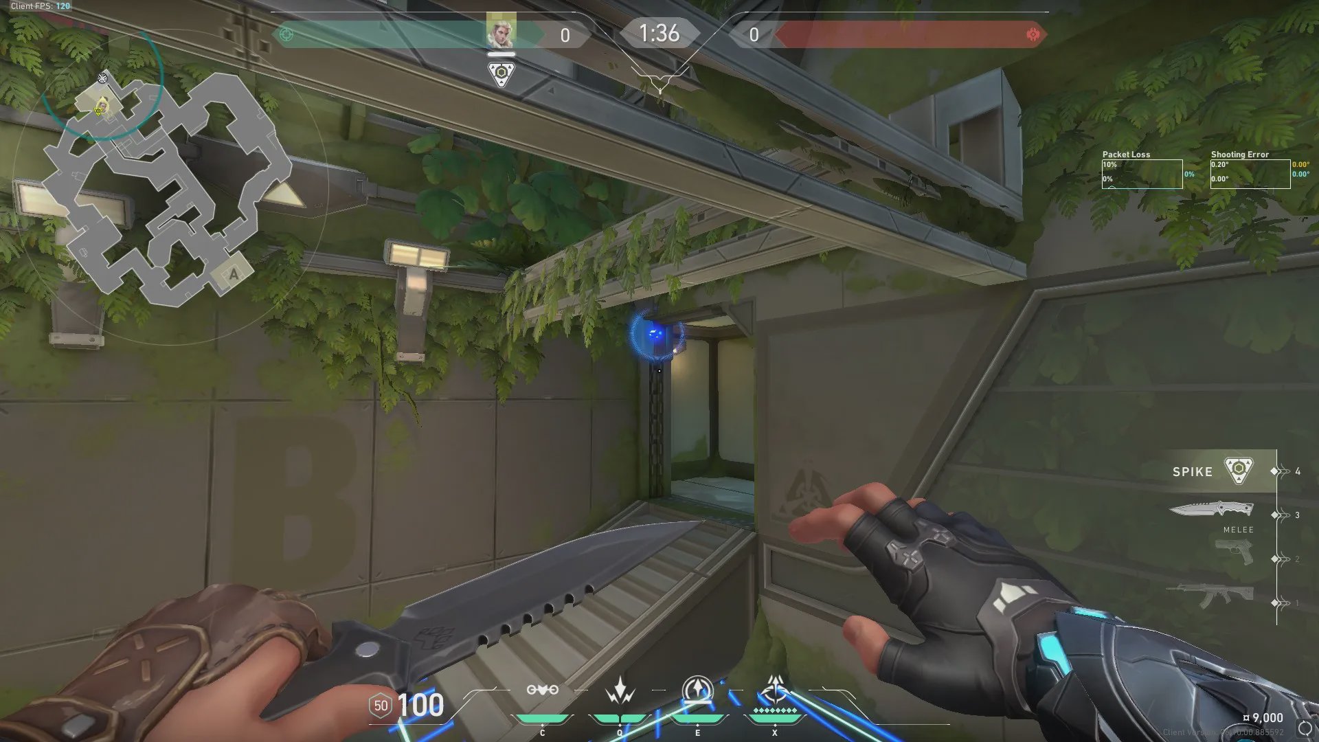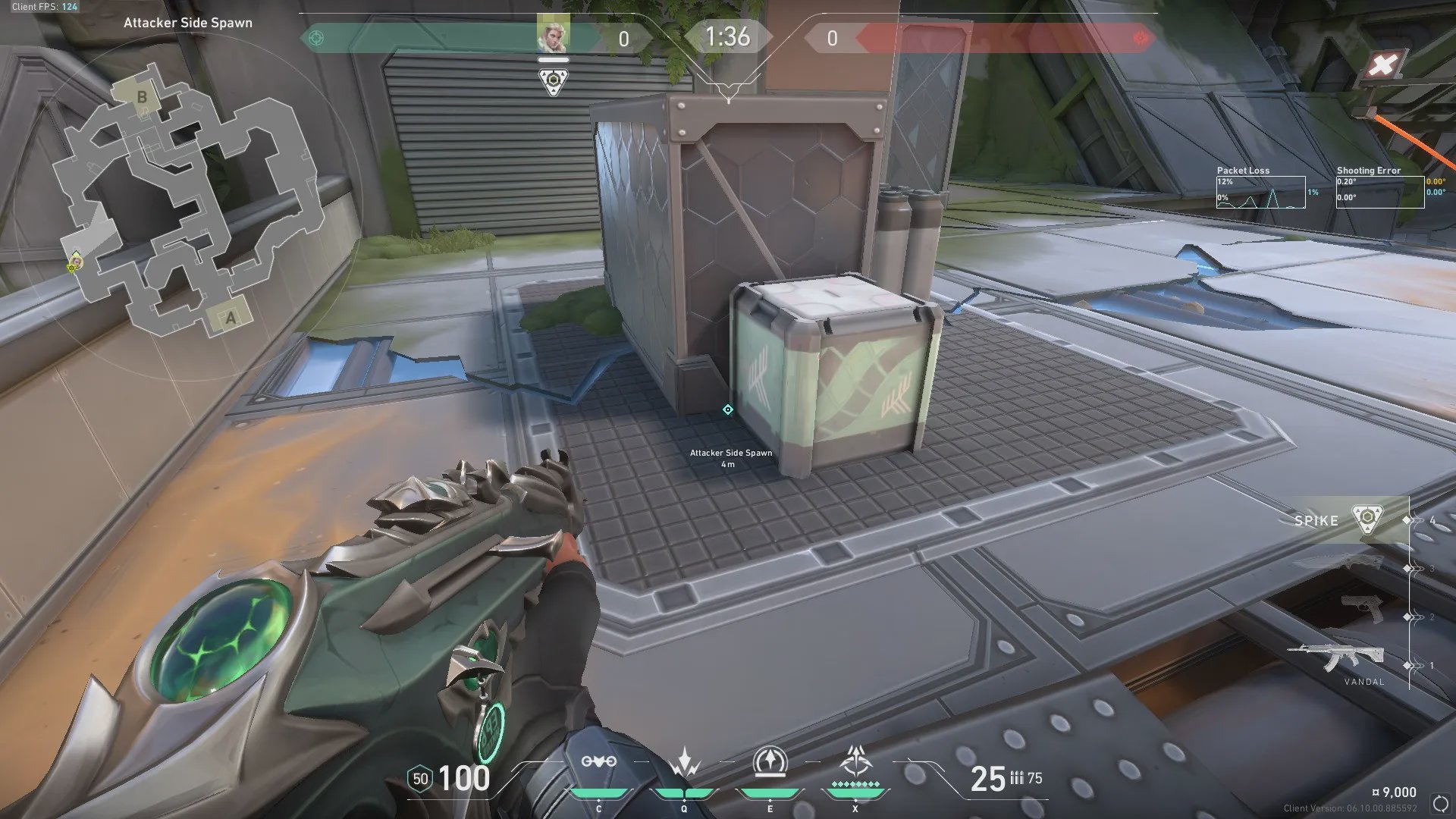 进攻方出生点出手,探测B包和周边信息。