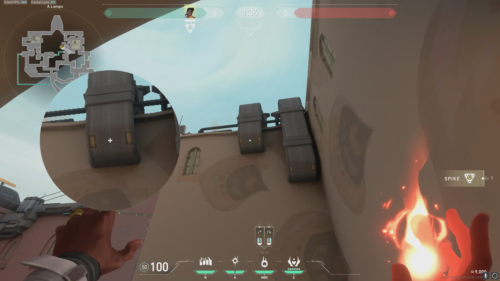 A灯位出手,压制A死点附近,适合拖时间。